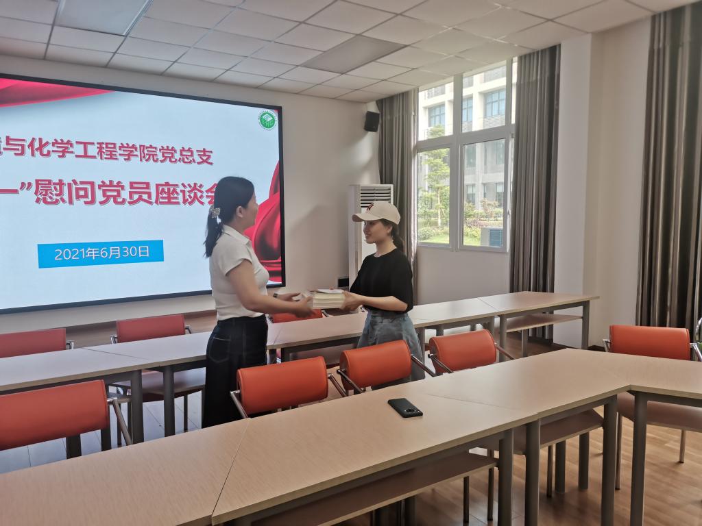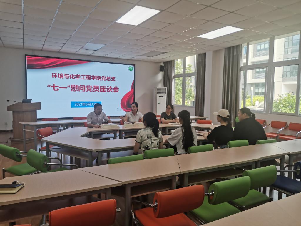 6月30日16:00,环化学院党总支在慎思楼4-206召开“七一”党员慰问座谈会。学院党总支书记谢昆、院长李廷真、党总支副书记代小菊出席会议,辅导员代表、本科生党员代表参加座谈。