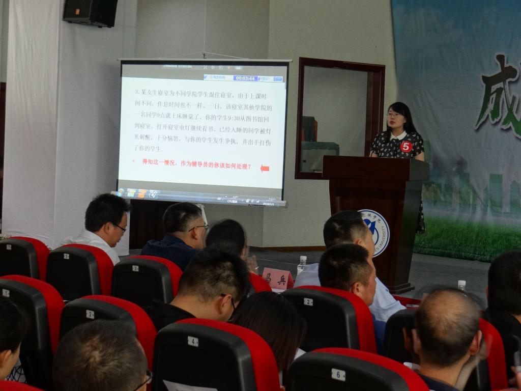 5月3日下午,由学生工作部(处)主办、我院承办,主题为“成师成友成范 育心育气育能”的第六届辅导员素质能力大赛在学术报告厅圆满落幕。学校党委委员、副校长臧小林出席决赛现场,各二级学院学工负责人、全体辅导员和部分学生代表观看了比赛。