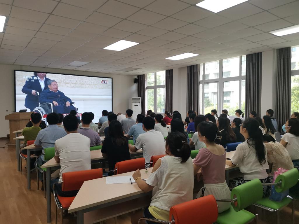 学院党总支精心组织,采取集中和分散相结合的方式进行。75名师生在慎思楼4-206集中观看,其余师生在教室、寝室等场所分散观看。