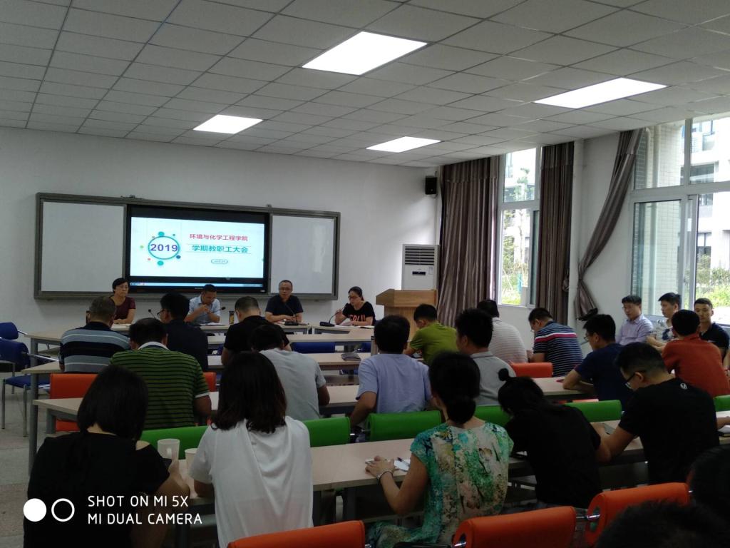 9月1日下午,环化学院在慎思楼4栋206召开2019下半年第一次教职工大会。会议由院长李廷真主持。