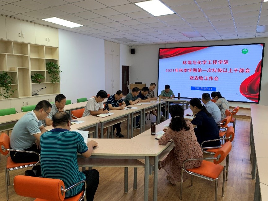 9月1日下午,环化学院召开新学期科级以上干部会暨安稳工作会。学院领导、科级干部到场参会,会议由谢昆书记主持。