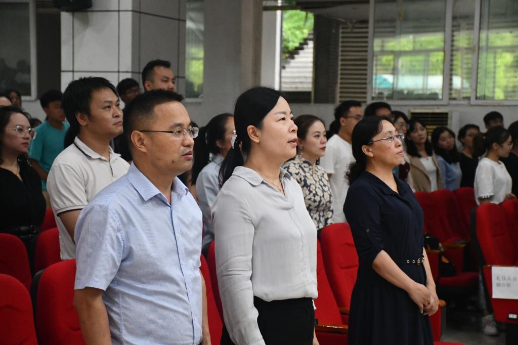 党总支书记谢昆教授为新生详细解释“厚德、博学、自强、创新”的校训精神内涵,希望新生们能够用其引领自己成才;希望新生能够做好时间管理,努力学习,提升自己,不断成长;阐释“自律”的内涵,引导新生敢于自律,善于自律,努力成为德智体美劳全面发展的社会主义建设者和接班人。