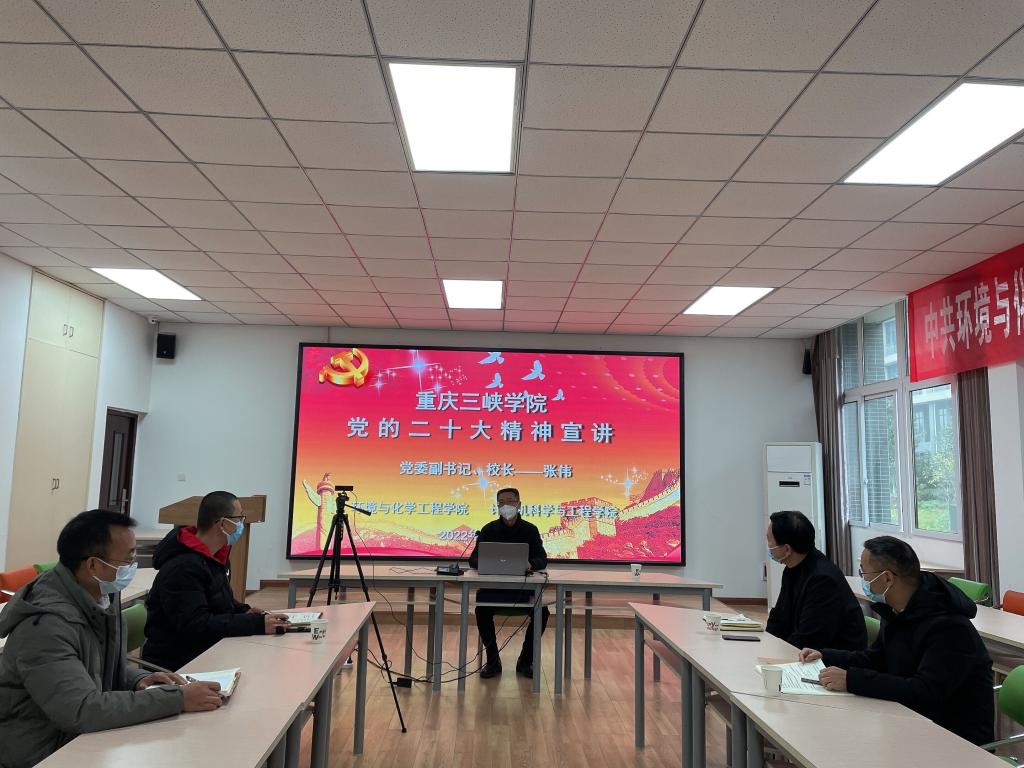 为深入学习贯彻落实党的二十大精神,确保党的二十大精神入脑入心、落地落实,12月8日下午,学校党委副书记、校长张伟向学院全体教职工作党的二十大精神专题宣讲。宣讲会由学院党总支书记刘健主持,以线上线下的方式进行。院长李廷真在现场听取了宣讲,其余教职工在线上听取了宣讲。