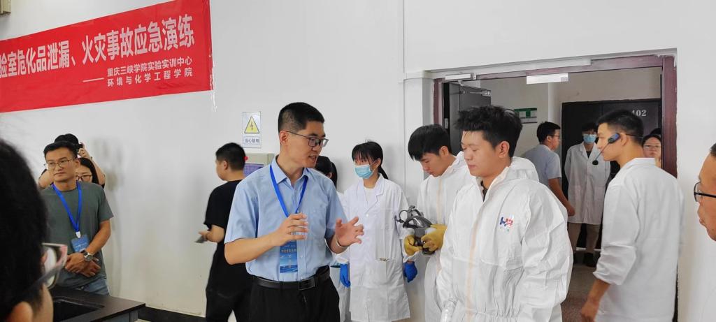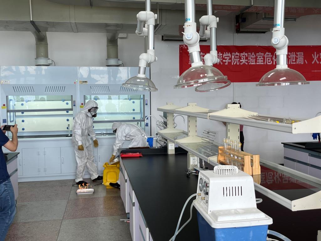 本次演练由实验实训中心主办、环化学院承办,旨在落实《教育部关于加强高校实验室安全工作的意见》文件精神,加强实验室安全防范,进一步提高实验人员应对危化品突发事故的应急处置能力。实验实训中心、保卫处、环化学院相关负责人,以及各学院负责实验室工作的相关领导、实验室管理负责人、环化学院教学科研师生代表参加了演练。