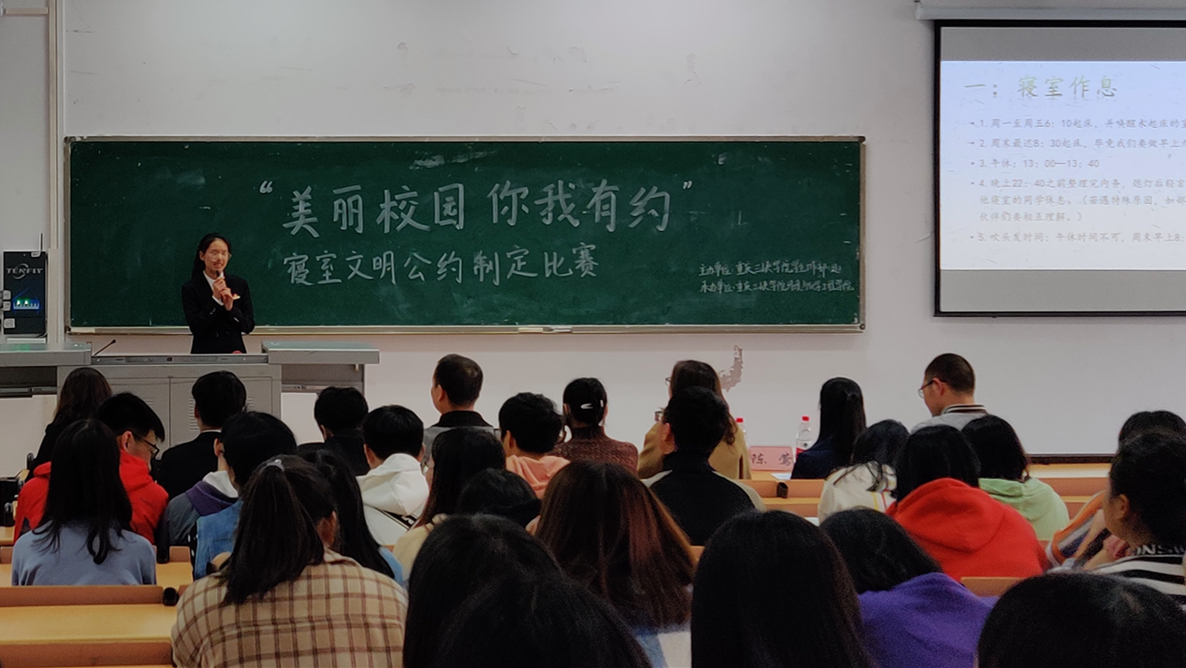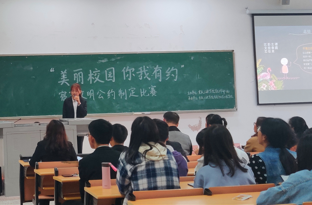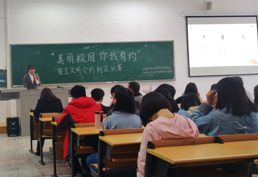2019年11月7日14:30,由必赢3003no1线路检测中心学生工作部(处)主办、必赢线路检测3003no1承办的“美丽校园 你我有约”寝室文明公约制定大赛于明辨楼2栋102成功举办。出席本次比赛的评委有必赢3003no1线路检测中心学生公寓管理中心主任杨小丽、文学院学工办主任熊维娟、生物与食品工程学院学工办副主任李华林、马克思主义学院学工办副主任陈莺、必赢线路检测3003no1学工办副主任周强,来自16个学院的29支队伍参赛。
