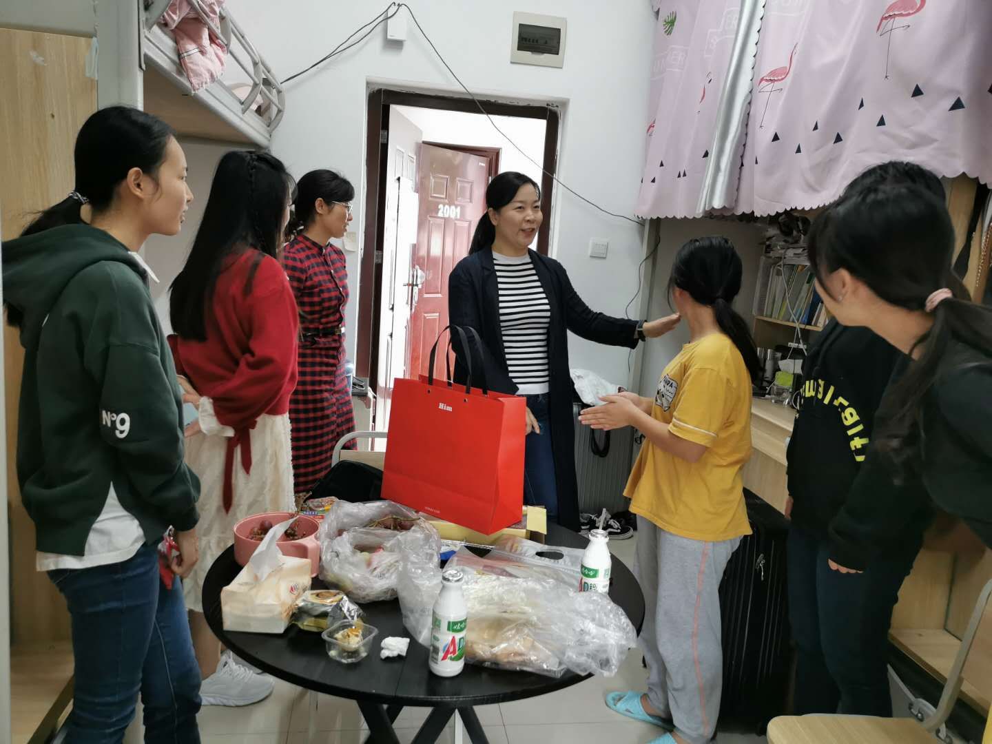 2020年10月1日上午10:00,环化学院党总支书记、院长、党总支副书记在各年级辅导员的陪同下深入学生宿舍,看望慰问国庆假期留校的453名本科和研究生。
