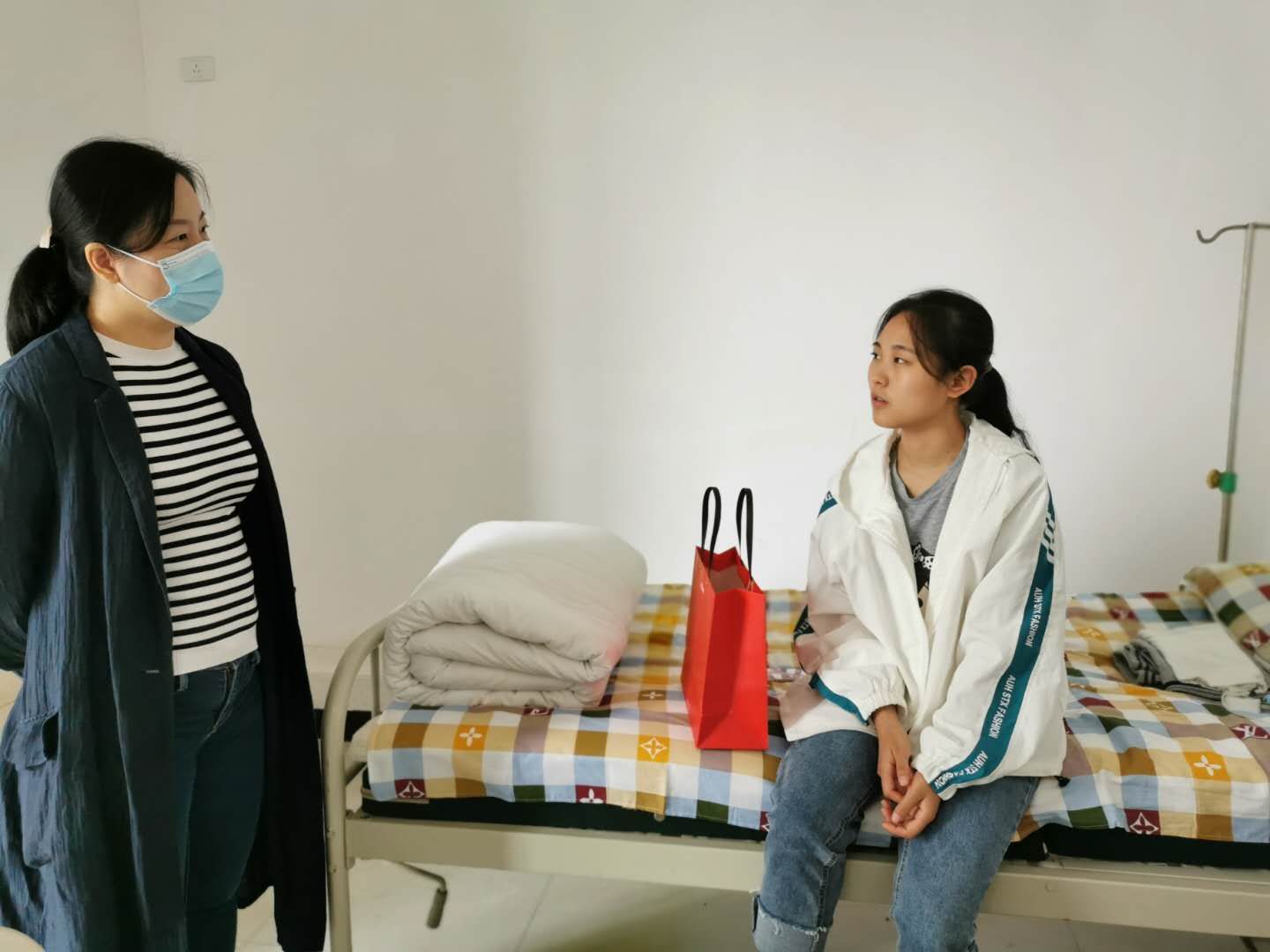 随后,党总支书记谢昆一行到校医院看望慰问了2020级化学工程与工艺二班生病学生代文欢,送去了学院的关怀。