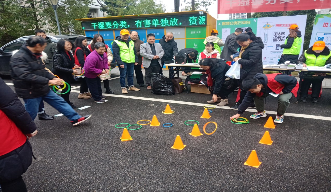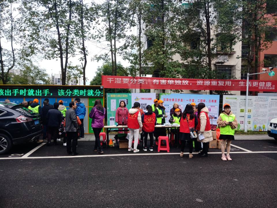 2019年12月1日上午9:30,必赢线路检测3003no1绿色环保协会组织了10名志愿者到陈家坝香樟苑社区参加了“垃圾分类”社区宣传活动。