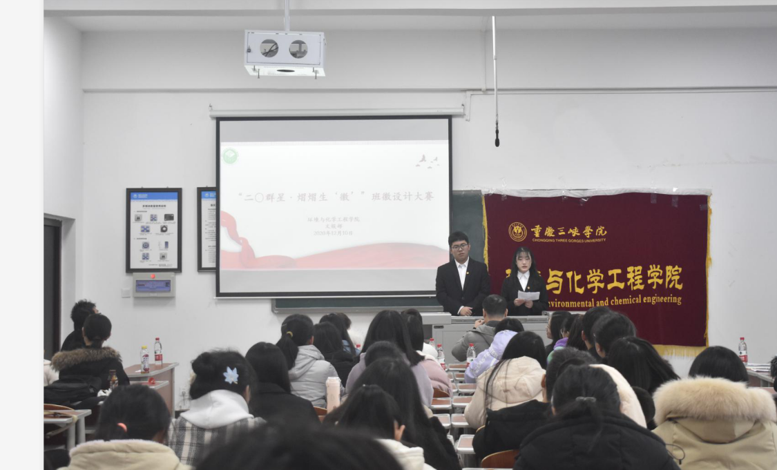 比赛现场,各班按照抽签顺序依次上台,宣讲人以PPT的形式,分别从班徽寓意、班级宣言、班级风采、班级展望等四个方面进行展示;评委们提问交流,并对如何改进给予指导、建议;点评环节,任艺表示:“活动中同学的团结协作,使得班级更加团结,对班级协作、班风建设有极大的帮助,希望大家继续凝聚,都能熠熠生辉”;颁奖环节,任艺为获奖的班级进行颁奖并合影留念。至此“二〇群星•熠熠生‘徽’”班徽设计比赛圆满结束。