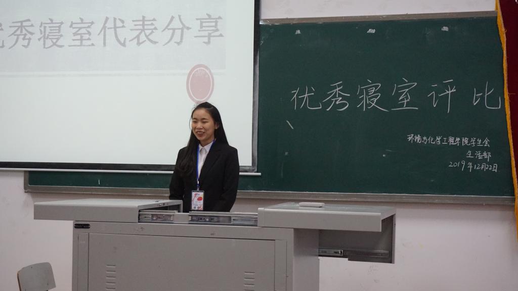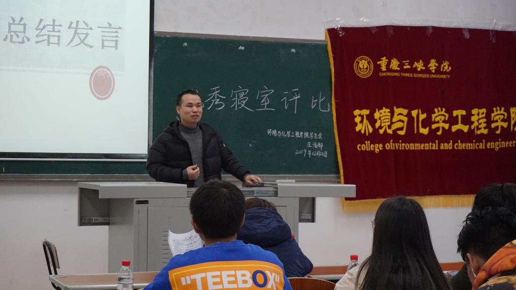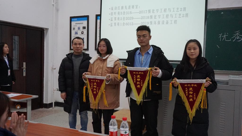 活动的第一项由余老师宣读表彰文件,根据本学期校宿管和院上的检查打分、批评表扬情况,综合选出前十二名优秀寝室:榕叶苑5舍315(2017级)、蓝雾苑2舍2029(2019级)、蓝雾苑1舍6012(2019级)、桂花苑7舍517(2017级)、海棠苑6舍506(2017级)、蓝雾苑2舍2037(2017级)、海棠苑6舍513(2017级)、蓝雾苑1舍3024(2017级)、蓝雾苑2舍2019(2019级)、蓝雾苑2舍2009(2019级)、蓝雾苑1舍4048(2019级)、蓝雾苑1舍6004(2019级),并为各寝室颁发奖状;第二项由周老师为优秀寝室颁发流动红旗;第三项寝室代表发言,黄飞翔同学讲述了每天都会安排同学打扫寝室,周四会全寝室一起做好寝室卫生;成长露同学则介绍了寝室每个成员的“代号”,展现了一个和谐温馨的寝室。最后,周强老师肯定了同学们在寝室卫生方面的努力,强调寝室人际关系的重要性,并表示希望在下学期的优秀寝室评比大赛中,能有更多的优秀寝室涌现。同时,再次祝贺获奖的优秀寝室,希望能再接再厉,继续保持。