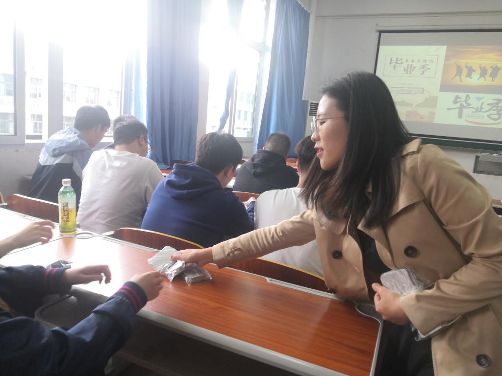 会上,毕业班辅导员肖红强调“离校手续、毕业证学位证领取、档案寄送、组织关系转接、学分认定、安全教育等”等毕业相关事项;系主任就学生毕业答辩、毕业论文及材料准备等事宜进行提醒。随后,系主任和辅导员向全体毕业生派发毕业慰问品。