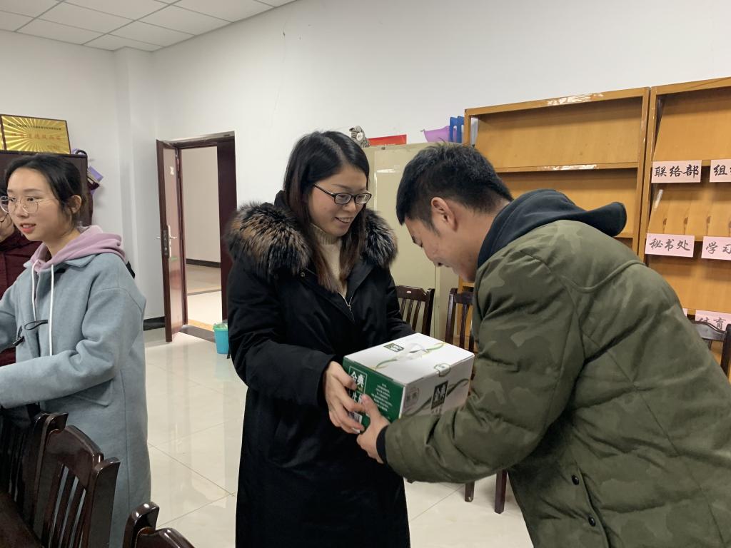 2019年12月30日下午2:30,环化学院召集学生代表于慎思楼四栋303进行元旦慰问交流,环化学院党总支副书记代小菊、学工办副主任周强及全体辅导员出席本次交流会。 交流会上,学生代表就过去半学期收获、不足、下学期的计划和展望、对班级学院的建议进行交流;代书记对同学们过去的学业、工作给予了充分肯定,并提出两点希望:一是请同学们新的一年树立目标,以目标为导向,奋勇向前;二是好好备考,诚信考试,考出水平。最后,她代表学院对所有同学送上新年的祝福。与会老师为同学们发放了元旦慰问品。