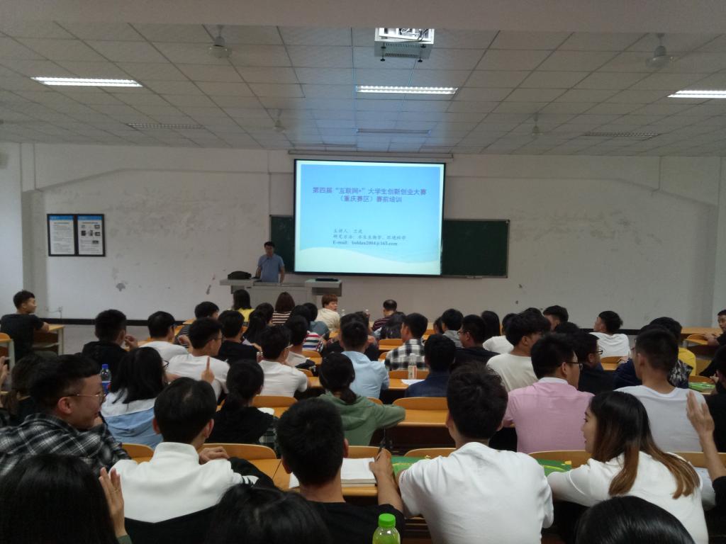 5月24日下午,我院在百安校区二教204举行了两场第四届“互联网+”大学生创新创业大赛的赛前培训。本次培训的主讲人是兰波博士,我院党总支书记谢昆教授参加,另外参加培训的还有指导老师、全体辅导员和各专业学生。