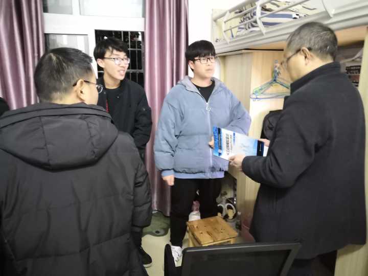 谢书记叮嘱大家要注意寝室卫生和用电、燃气安全,主动排查和上报寝室的各种安全隐患,注意寝室通风,共同营造清洁、卫生、安全、和谐、宜居的寝室环境,培养学生良好的学习习惯和规律的作息时间,经常走出寝室活动。李院长对大四毕业生考研复试、就业等问题做了指导交流,一方面对压力比较大的同学做了心理疏导,另一方面鼓励同学们要充满信心,积极进取,为即将到来的毕业做好各项准备!