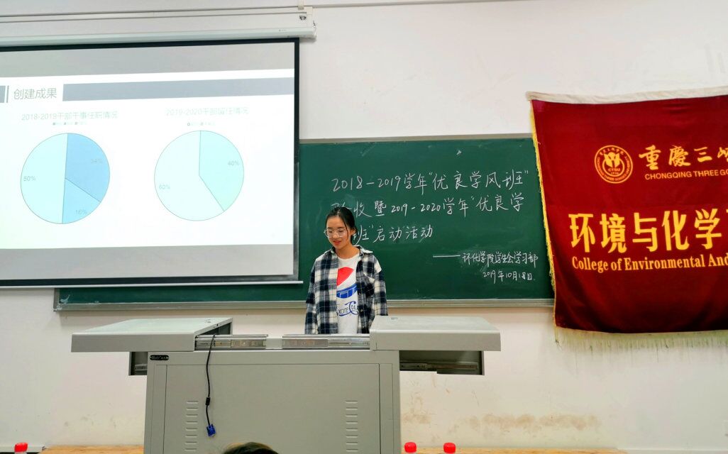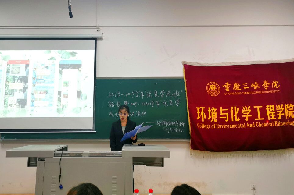 2019年10月18日19:00,必赢线路检测3003no1在慎思楼4栋406举办2018-2019学年“优良学风班”验收暨2019-2020学年启动活动。环化学院党总支副书记代小菊、学工办副主任周强、2017级辅导员肖红、2018级辅导员余夏君、2019级辅导员蒋雪梅担任评委,环化学院主席团和各个年级部分学生代表参加。
