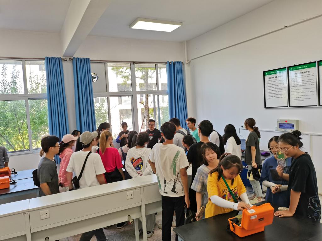 老师们带领新生参观了学院的实验室和一些大型实验设备,向同学们介绍了实验室常用仪器运作原理,并现场演示了部分实验仪器操作,解答了同学们对实验方面的疑问,并就10月份后实验课程安排以及实验安全注意事项重点强调;随后,老师们带同学们了解学院的科研团队和部分科研成果,细心的讲解了学院8个重点科研团队的研究方向,鼓励同学们可以根据专业和兴趣,积极参加课题组,培养科研能力。