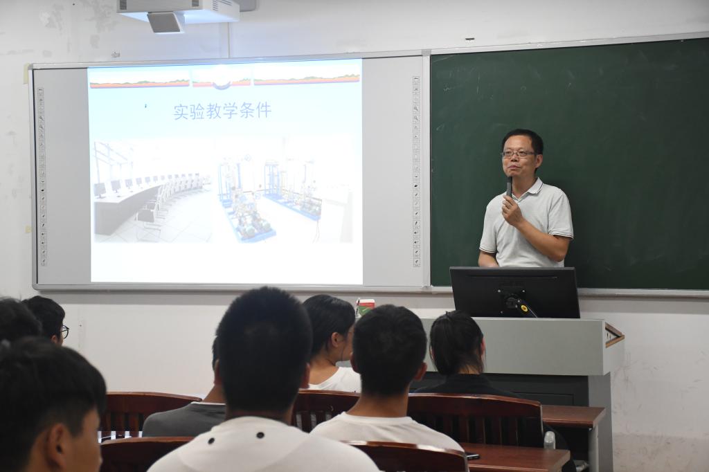 环境科学兼环保设备工程专业系主任兰国新向同学们介绍了专业平台和人才培养方案,强调同学们要拒绝进入大学后躺平,要力争上游、努力学习、不懈奋斗,要培养“学习能力、专业技术能力、社会交际能力”,为日后成为高素质应用型人才打下坚实的基础。