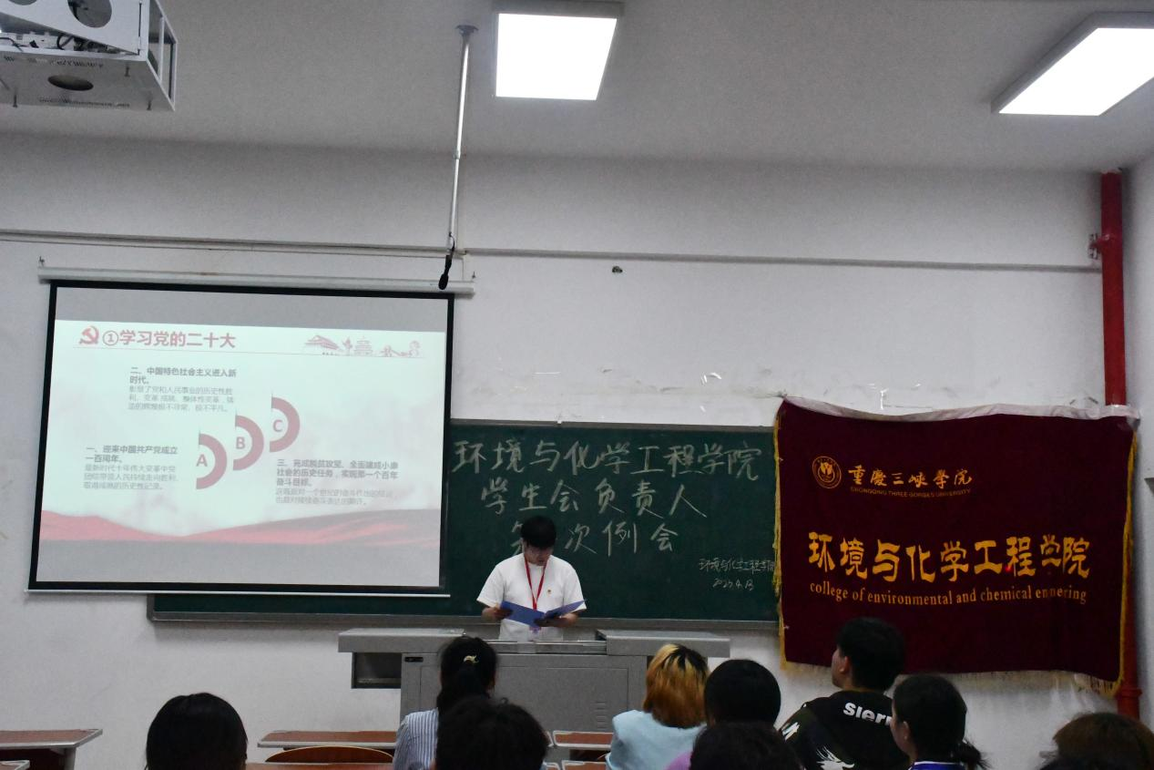 会上,陈春从志愿青春行、弘扬二十大精神、如何做好时代新青年三个方面带领大家学习二十大报告的内容,号召大家要坚定不移听党话、跟党走,立志做有理想、有担当、能吃苦、肯奋斗的新时代青年。各部门负责人依次上台讲述本学期的工作内容并针对自身在工作中存在的问题进行反思。