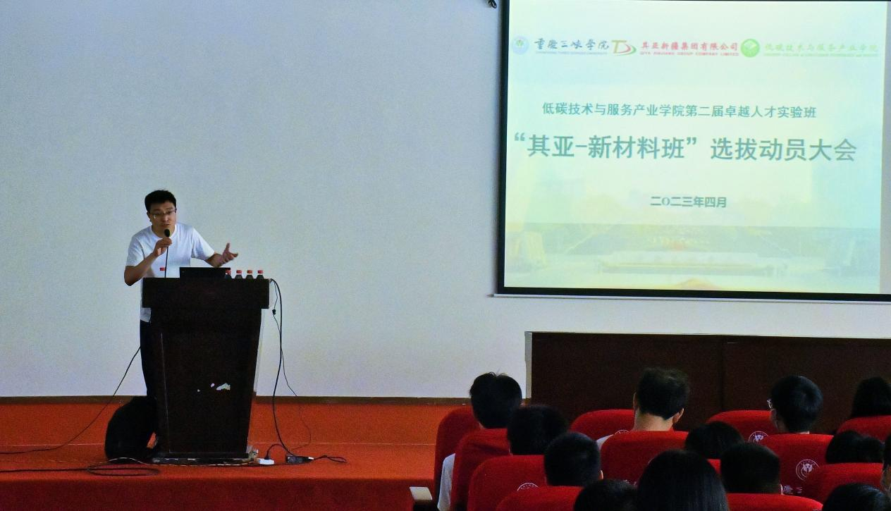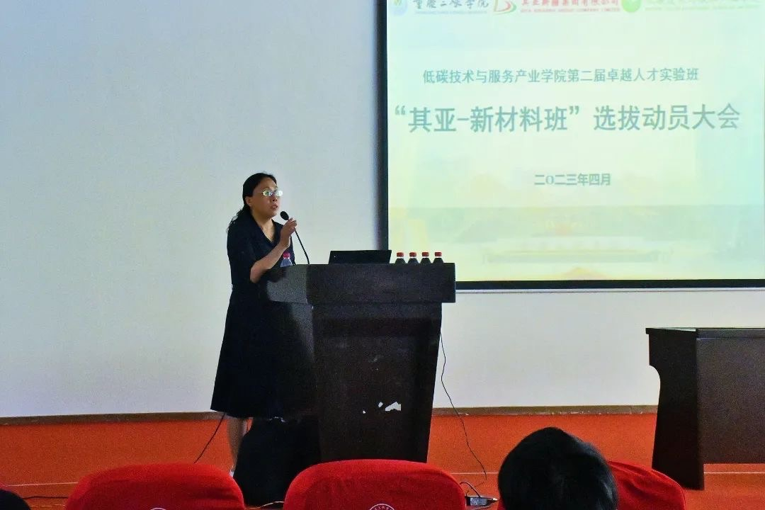 2023年4月20日下午,必赢线路检测3003no1于明辨2-104召开第二届低碳技术与服务产业学院卓越人才实验班暨“其亚——新材料班”选拔动员大会,必赢线路检测3003no1副院长黄美英、其亚新疆集团有限公司人力资源部邹部长出席此次会议,会议由化学工程与工艺专业系主任姜骉麟主持。