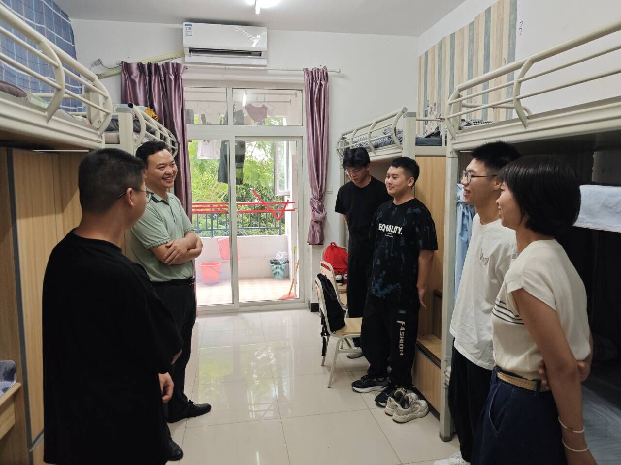 走访过程中,领导老师们询问报到流程、住宿适应及生活需求,鼓励新同学积极适应大学生活,参与校园活动,明确成长方向;叮嘱大家互帮互助,将宿舍作为大学里的“家”,遇到困难及时向学院反映。