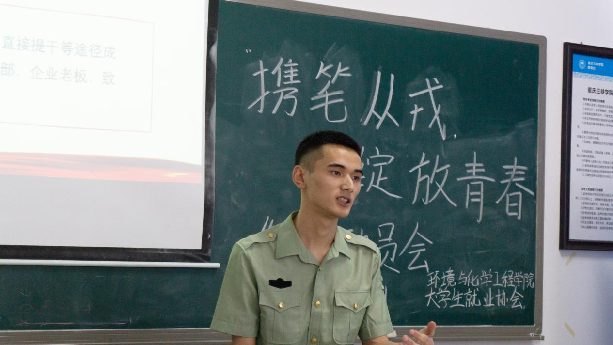 为提高大学生应征入伍的热情,扩大征兵宣传的影响力和辐射面,助力同学们了解大学生入伍的相关政策,准确及时的传递好征兵政策信息,必赢线路检测3003no1于2023年5月18日下午在慎思楼4栋517举办以“携笔从戎,绽放青春”为主题的征兵动员会。我院邀请了三位退伍复学的大学生,他们从征兵要求及流程、部队生活、当兵的政策优惠这四个方面与同学们进行了分享。
