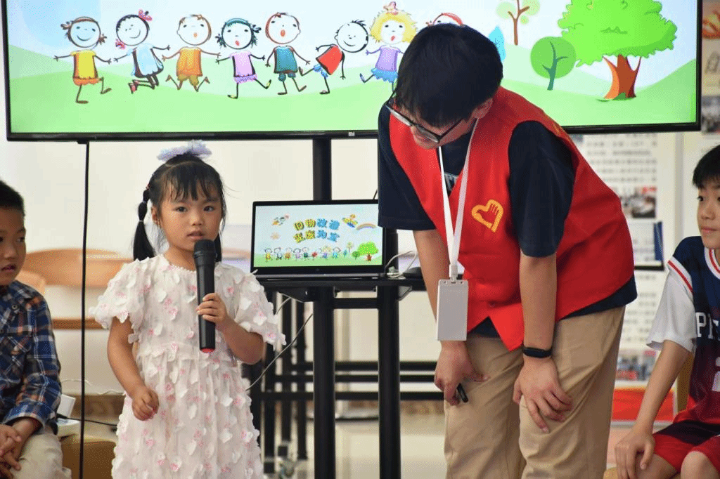 活动之前,工作人员王茀基带领志愿者们熟悉活动流程和注意事项。主持人白寒通过知识问答的方式引入主题,调动小朋友们的积极性。在志愿者的引导下,小朋友们发挥想象,将废纸盒、空塑料瓶等旧物进行改造,培养小朋友们的创造能力和动手能力,学会利用旧物,让小朋友们拥有保护地球的自豪感。志愿者们鼓励小朋友们站上讲台,介绍自己的作品并走秀展示,培养小朋友的语言表达能力,增强小朋友们的勇气。