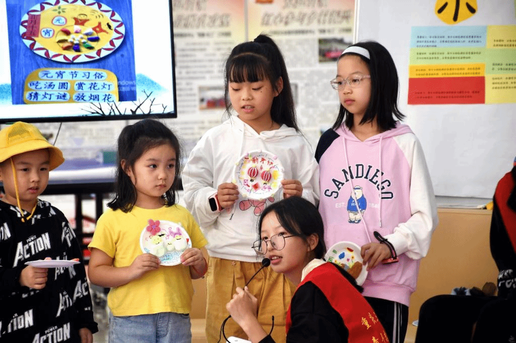 主持人黄怡娟首先通过短视频介绍传统节日,让小朋友对我国的传统节日有一个初步的了解,紧接着进一步讲解了春节、清明节、端午节和中秋节的来历以及相应的习俗,让小朋友们对中华优秀传统节日有了更加深刻的认识。随后志愿者带领小朋友们完成“我心中的传统节日”手工活动并进行展示。活动过程中小朋友们积极参与,用他们的想象力来描绘心中的传统节日,志愿者也鼓励小朋友们站在讲台介绍自己的作品,以此来培养小朋友的语言表达能力和增强小朋友的勇气。