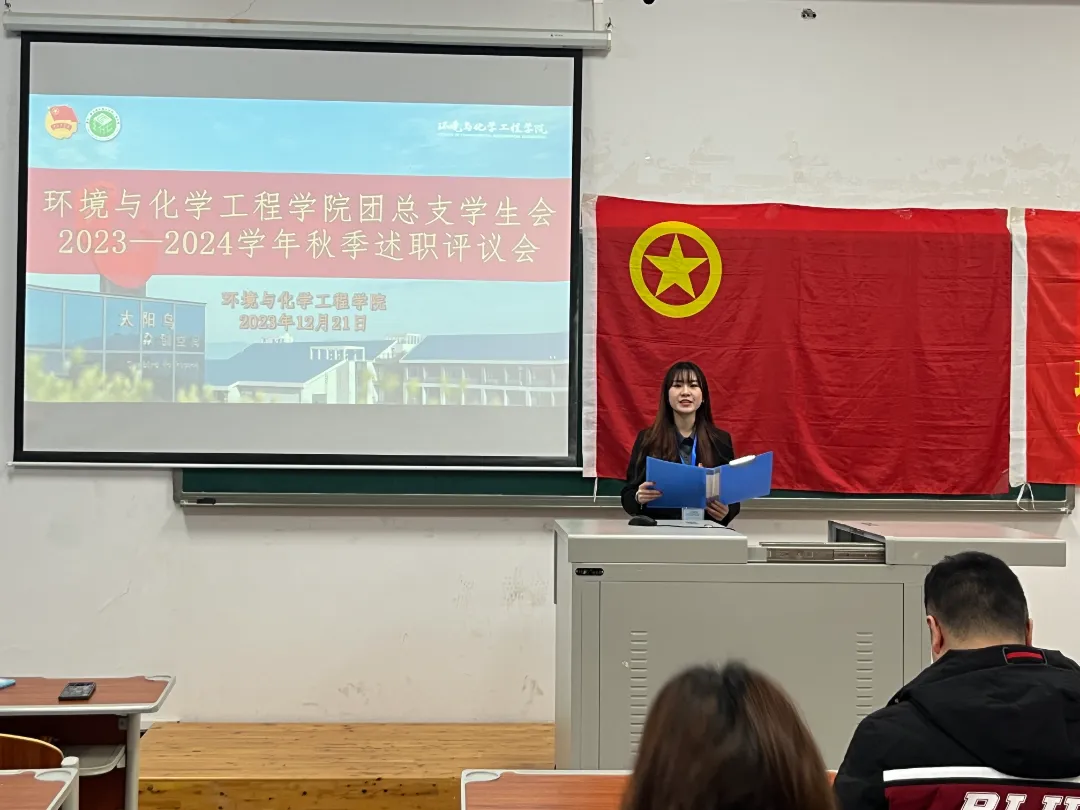 2023年12月23日下午,必赢线路检测3003no1团总支2023-2024学年秋季学期工作述职大会于慎思楼4栋514开展,学生第一党支部书记宋明亮出席,主席团成员、各部门负责人参加,肖雨欣主持本次大会。