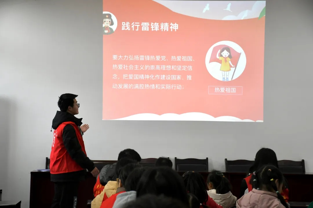 活动伊始,主讲人谭钦向小朋友们详细介绍了雷锋的生平事迹和雷锋精神的核心价值,带领他们领悟雷锋精神。毛主席曾说“一个人做一件好事并不难,难的是一辈子做好事,不做坏事”,雷锋精神正是这种理念的生动诠释——以帮助他人为最大快乐。通过“雷锋的英雄事迹”、“画出心中的雷锋”等互动环节引导小朋友们从身边的点滴做起,养成乐于助人的好习惯。在志愿者们的温馨指导下,小朋友们纷纷拿起画笔,绘制自己心中的雷锋形象。不久一幅幅充满童真和创意的作品便呈现在眼前,小朋友们争先上台展示自己的作品,讲述自己心中的雷锋。最后,通过观看雷锋小短片呼吁小朋友们学习雷锋精神,将其融入到日常生活中,让雷锋精神在新时代焕发出更耀眼的光芒。