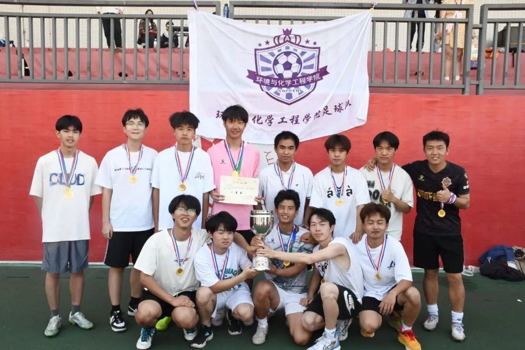 比赛伊始,各支队伍迅速进入状态,随后双方展开了猛烈的对抗。球员们都发挥出自己的最佳水平,进行激烈的角逐,为观众们奉献了一场精彩的比赛。他们默契地传球、跑位,你攻我守,挥洒自己青春的汗水。在球场上叱咤风云的球员们充分展现了环化学院学生的精神风貌和竞技水平。最终,2023级环境科学拿下了冠军,2021级环境科学取得了亚军,2021级化学工程与工艺获得了季军,2023级化学工程与工艺获得了第四名。全体获胜队伍拍照留念,为总决赛画下句号。