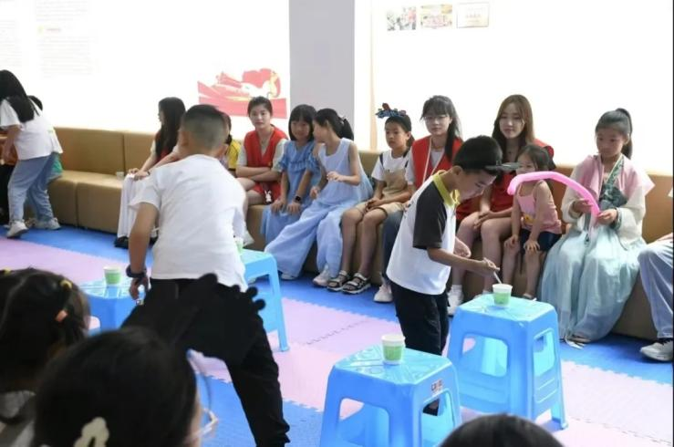 活动伊始,工作人员洪凯对志愿者进行志愿培训。随后,工作人员将小朋友同志愿者们分组划分进行活动。主讲人张徐锋向小朋友们介绍了儿童节的由来和意义,并通过“两人三足”默契、“抢沙包”反应、“夹气球”奔跑、“夹豆子”搬运、“乒乓球投掷”游戏等互动环节让小朋友们体验到了一个不一样的儿童节,为他们的童年画上了精彩的一笔,让他们体验到儿童节快乐的同时又了解到了儿童节的意义。最后,志愿者同小朋友们进行合影留念,为此次活动画上了一个圆满的句号。