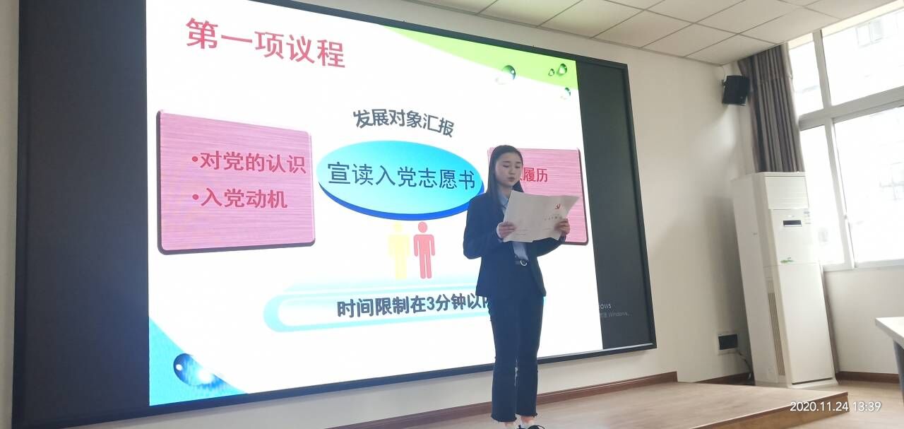 2020年11月30日,必赢线路检测3003no1学生第一党支部于慎思楼4-206教室组织召开了以接收中共预备党员为主题的支部党员大会,对拟接收预备党员刘恩兴、王杉、张涛、罗阳杨、熊思吕、吴洁、方舟、杨棹善、张祥梅等9位同志进行了讨论和表决。本次大会由党支部书记蒋雪梅主持,全体党员同志参会。