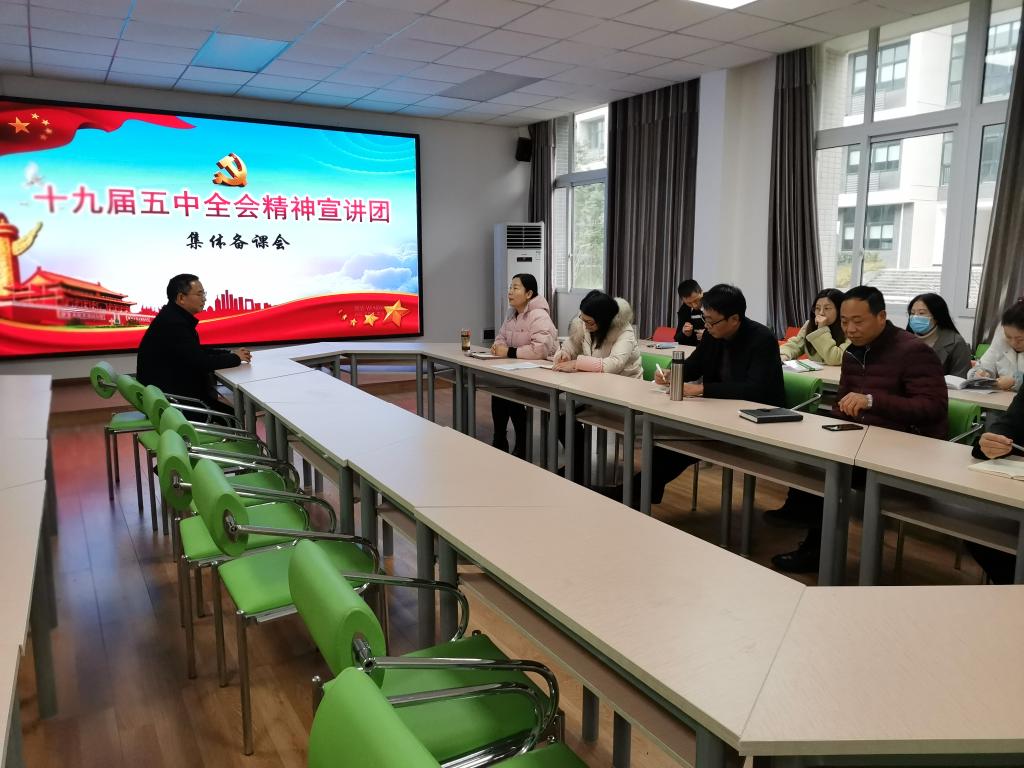 最后,党总支书记谢昆强调,宣讲团成员一是要深入学习、消化吸收党的十九届五中全会精神;二是要要担起政治责任,发挥个人专长,结合宣讲对象特点,精心备课备讲,集中时间精力,高质量、高水平完成好宣讲任务,让全会精神真正深入人心,落地生根。