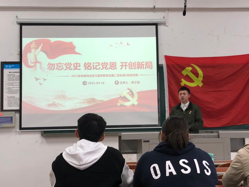 3月25日下午3点,必赢线路检测3003no1学生第二党支部于慎思楼5栋425教室开展3月党课学习,党课主题为:“勿忘党史 铭记党恩 开创新局”。学生二支部组织兼纪检委员周才波同志主讲,学生第二党支部全体党员参加。