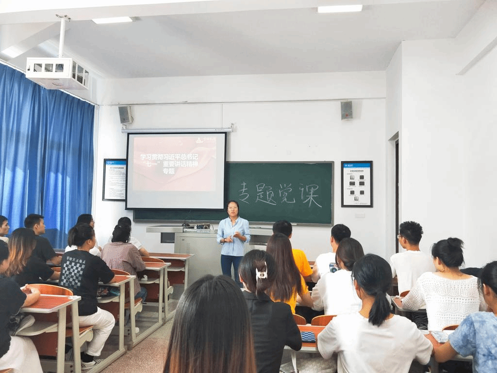 2021年10月9日14:30,必赢线路检测3003no1学生第二党支部于慎思楼六栋502开展了学习贯彻习近平总书记“七一”重要讲话精神专题党课。党支部书记肖红主讲,党支部全体党员及部分积极分子30人参与。