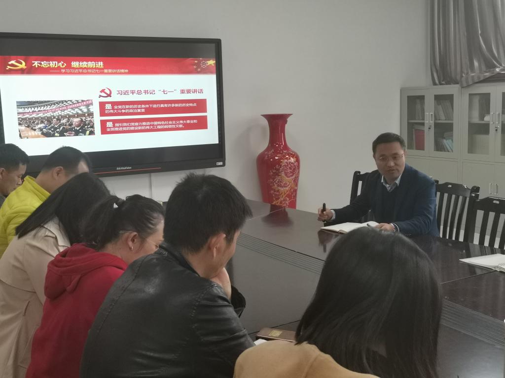 10月28日14:00,环化学院院长李廷真同志在慎思楼4-303为学院教工第一党支部讲授“不忘初心,继续前进”“七一”专题党课。党支部书记张六一主持,17名党员参加。