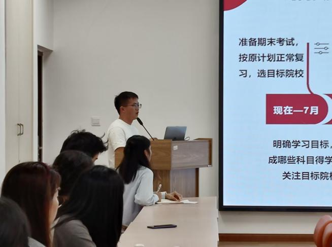 活动最后,张雷在总结讲话中向六位分享经验的同学致以衷心感谢,他鼓励低年级学生以党员学长学姐为标杆,充分汲取优秀经验,结合自身实际科学制定备考规划,在考研征程中锚定方向、稳步前行。张雷同时表示,学院将持续强化资源供给与指导服务,为每位备考学子搭建坚实的助力平台,全力护航考研目标实现。