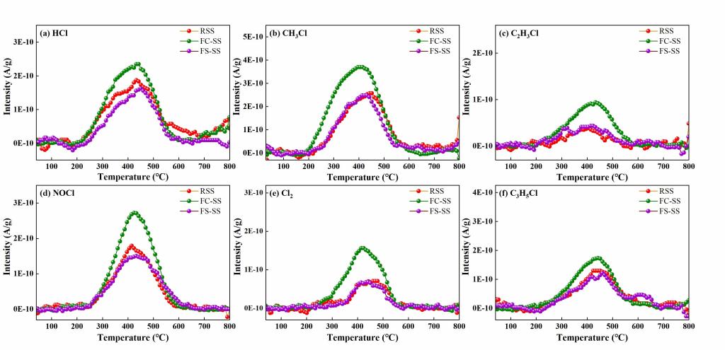 城市剩余污泥是污水处理过程中产生的有害固体副产物,不仅产量高,而且含有多种有毒有害物质。除了环境风险外,污泥因其生物质含量高而具有资源和能源回收的潜力。污泥热解因同时具有减量化、无害化和资源化的特点,已成为最有前途的管理方法之一。通常,为降低热解过程中的能耗,需要对污泥进行调理和脱水预处理以降低含水量。然而,这些调理剂在预处理过程中影响热解产物的机制尚未阐明。因此,本研究采用 X 射线光电子能谱 (XPS) 分析热解前后污泥样品中N、S和Cl污染物的化学状态变化,以及通过热重-质谱(TG-MS)和热解-气相色谱/质谱(Py-GC/MS)来阐明污泥样品热解过程中可凝和不可凝气体的释放特性。以上研究成果为污泥调理、脱水和热解的一体化处理与处置过程中,调理剂对污泥热解的影响效果提供理论依据。