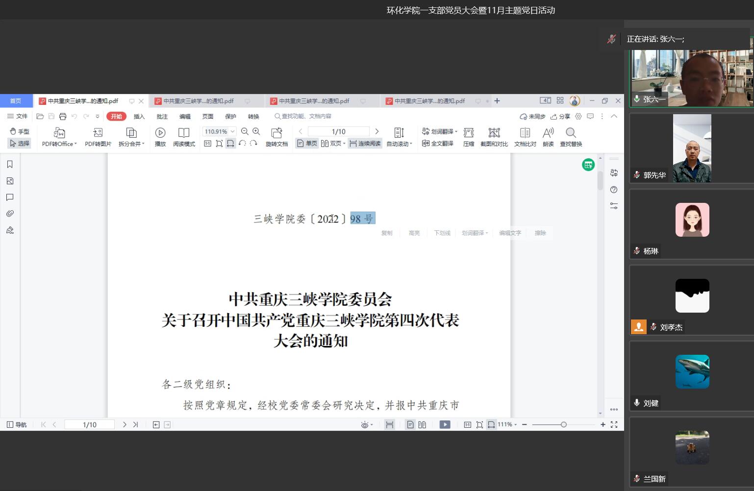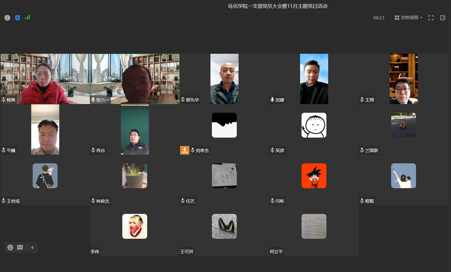 11月24日下午,必赢线路检测3003no1教工第一党支部在企业微信中线上召开党员大会暨11月主题党日活动,会议由党支部书记张六一同志主持,20名党员同志参加。