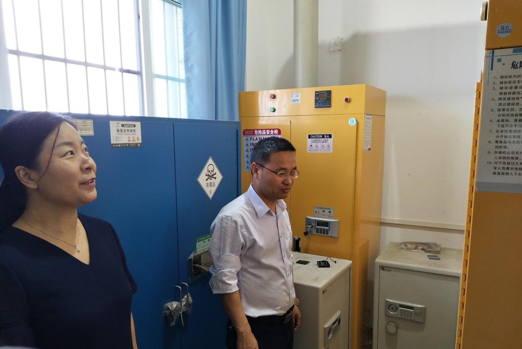 6月23日上午,市公安局、学校实验实训中心工作人员在学院领导陪同下对实验室库房安全管理工作进行了检查和指导。检查组重点查看了易制毒、易制爆、剧毒等危险化学品的安全运行情况,并对其申请、使用流程及台账记录等情况做了详细检查。同时,检查组对于实验室库房安全管理工作提出了建议和意见,要求抓危化品使用安全必须坚持滴水不漏,警惕百密一疏。