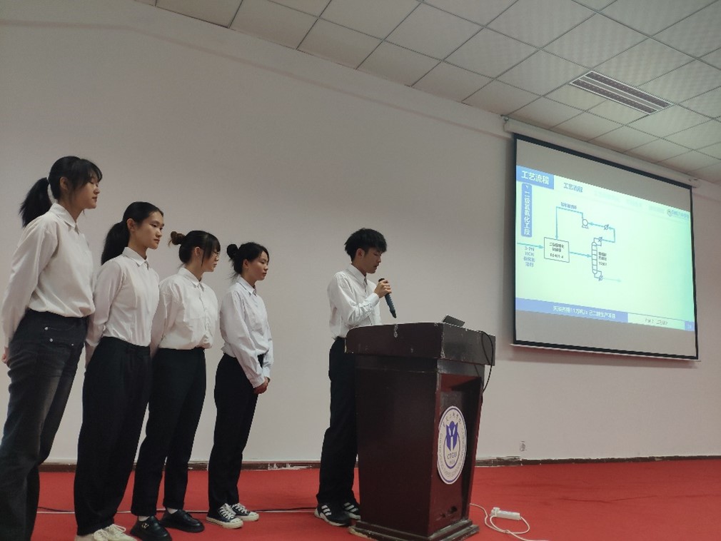 在6月28日举行的决赛上,学校邀请了重庆大学化工系主任魏顺安教授担任评委主席,学校化工专业教师担任评委。环化学院教师代表,2020级、2021级化工、过控专业学生现场观摩了决赛。场上参赛队伍通过PPT展示对作品进行介绍,评委们从设计作品的创新性、现代工具的使用、现场答辩等方面进行了评分,比赛在紧张激烈的气氛中进行。比赛结束后,魏顺安教授对本次比赛进行了点评,希望大家再接再厉,继续完善作品为市级和国家级比赛做好准备。
